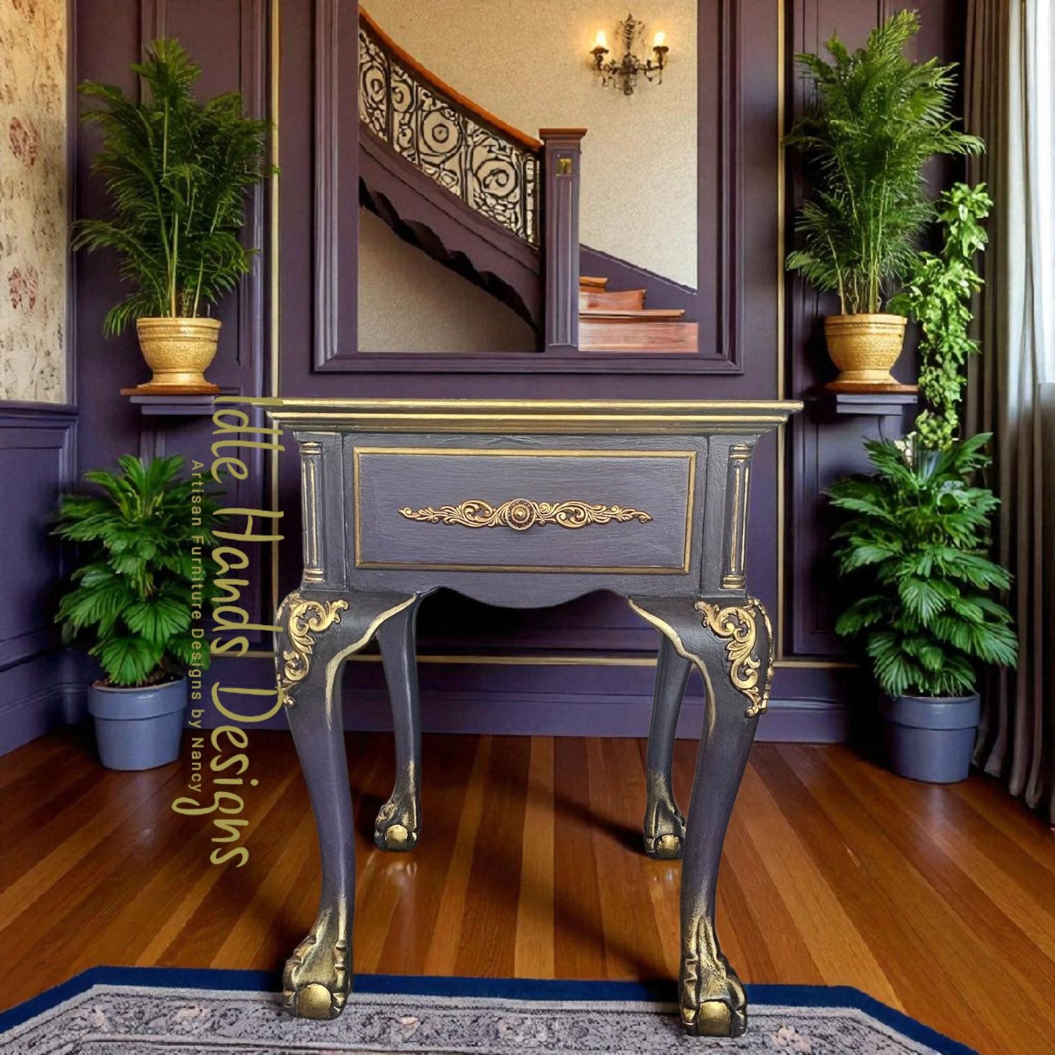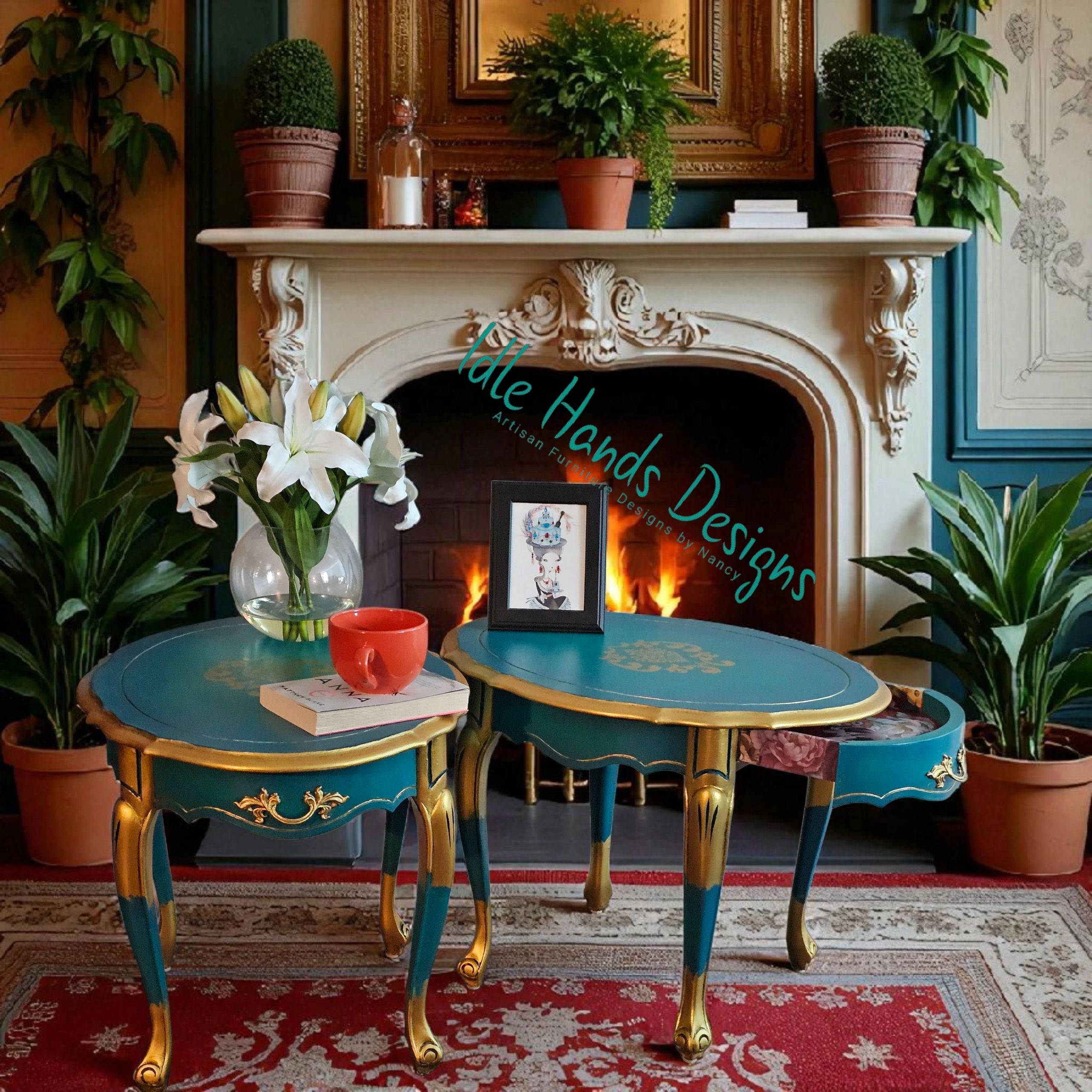 Introducing Marie and Antoinette, two shy but saucy 'one of a kind' French Povincial twins. From old to new these elegant hand painted/designed solid wood end tables will be a beautiful addition to any home.